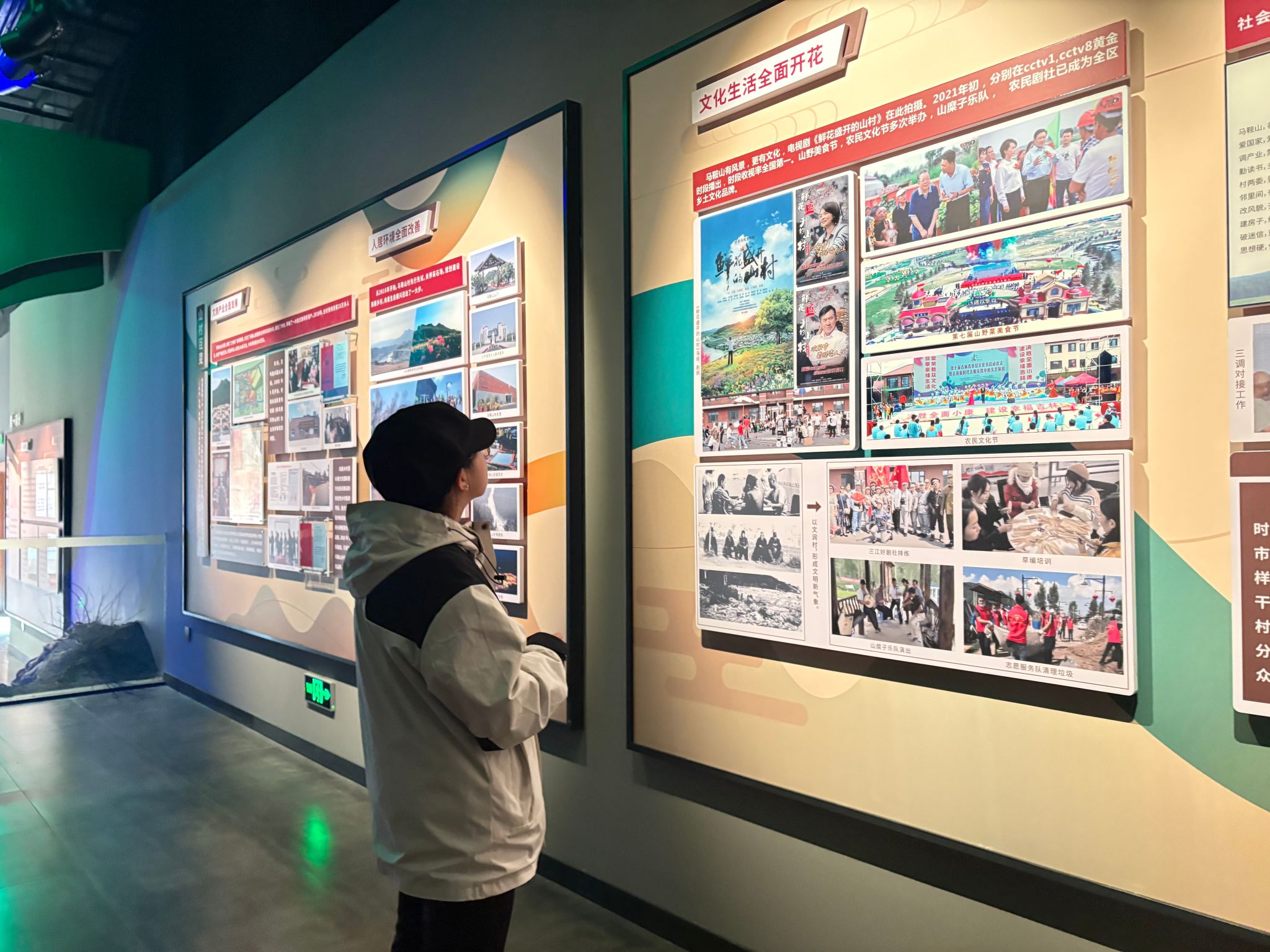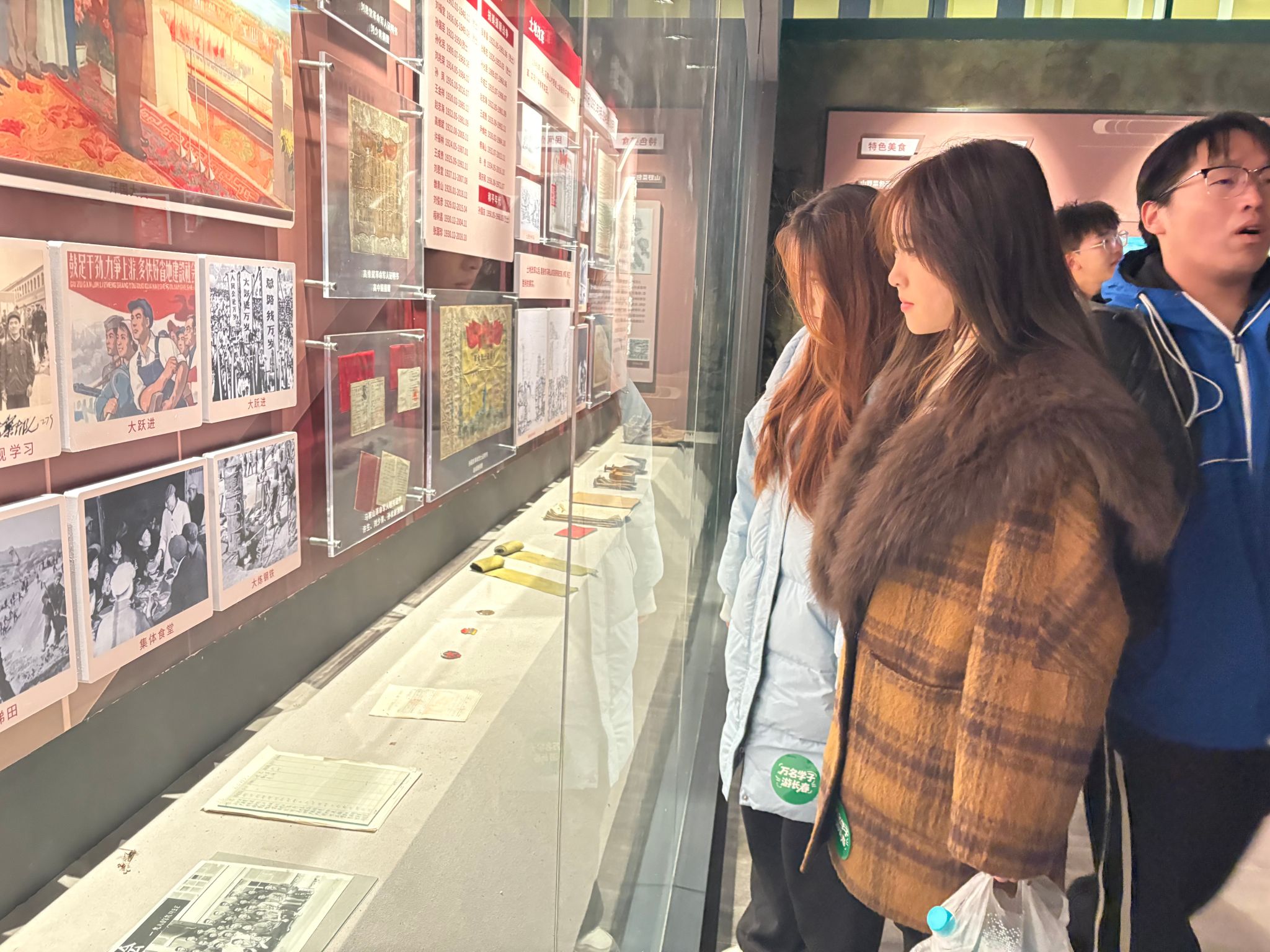 随后,师生一行前往马鞍山村村史馆。馆内详细的文字记载、鲜活的实物陈列、直观的场景复原,系统展现了马鞍山村从过去到现在的发展变迁,全方位呈现了乡村在产业发展、生态治理、民生改善等方面的显著成就。学子们认真聆听村史介绍,不时驻足交流,真切体会到乡村振兴战略给基层带来的深刻变革,对“绿水青山就是金山银山”的发展理念有了更直观的理解。
